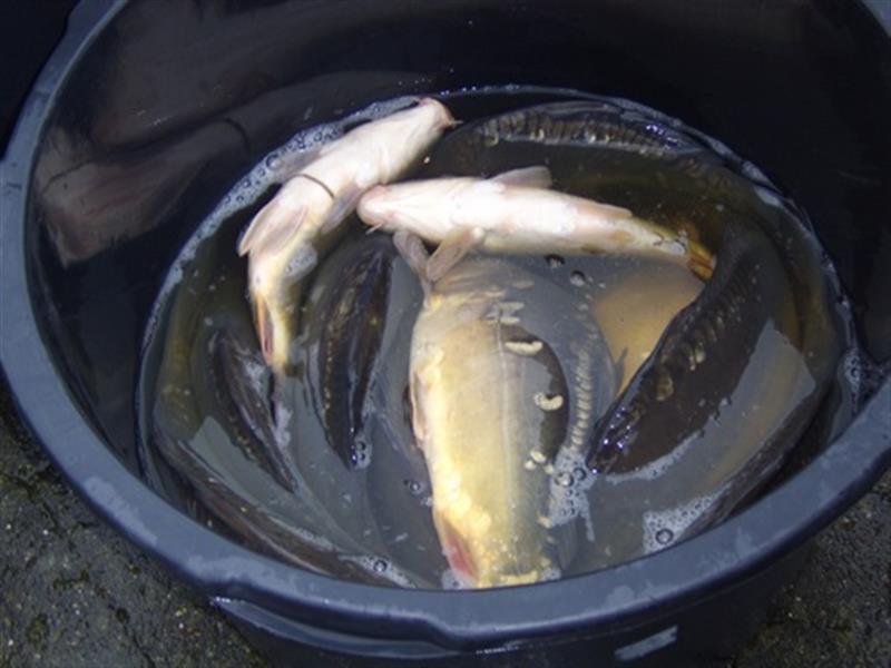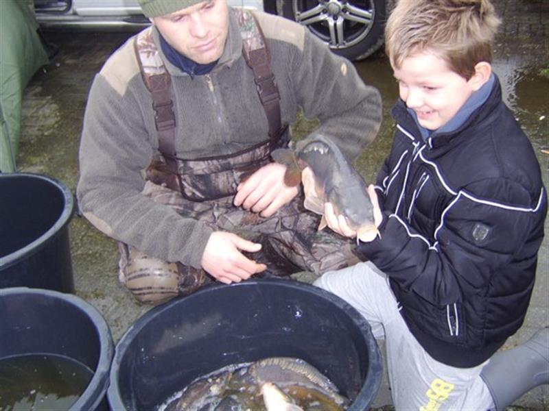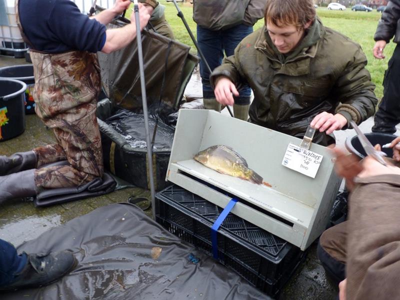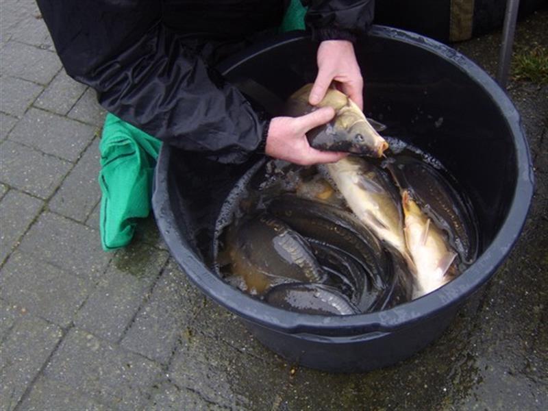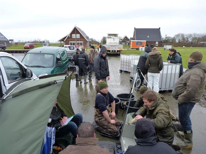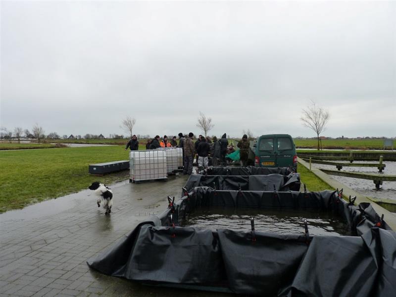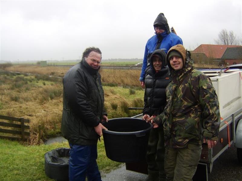 Diverse foto''s van de uitzetting van plusminus 800 spiegelkarpers in de Friese Wateren