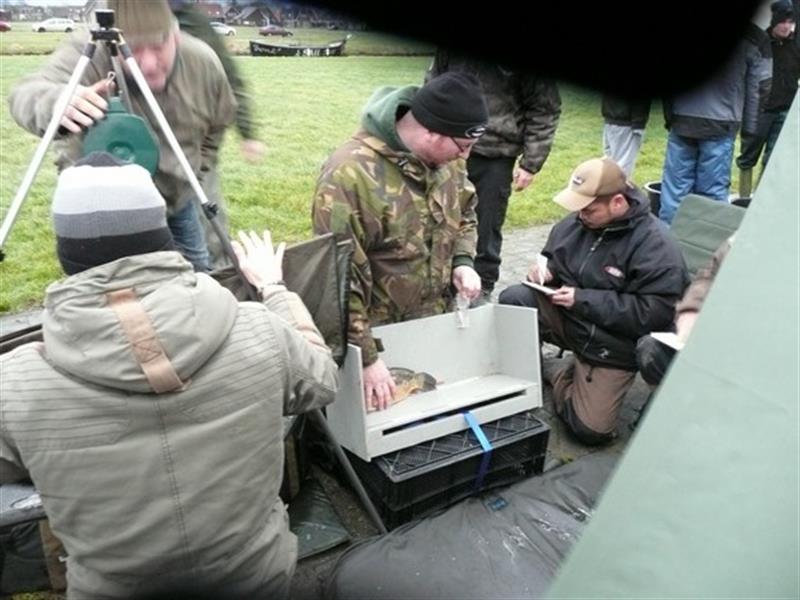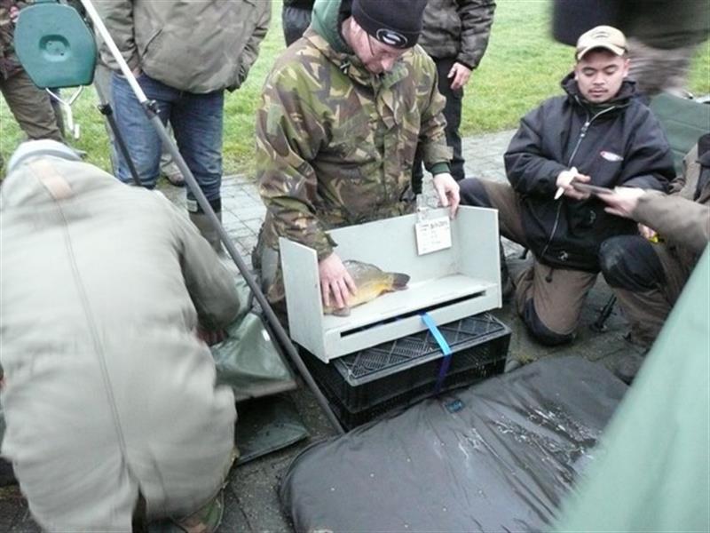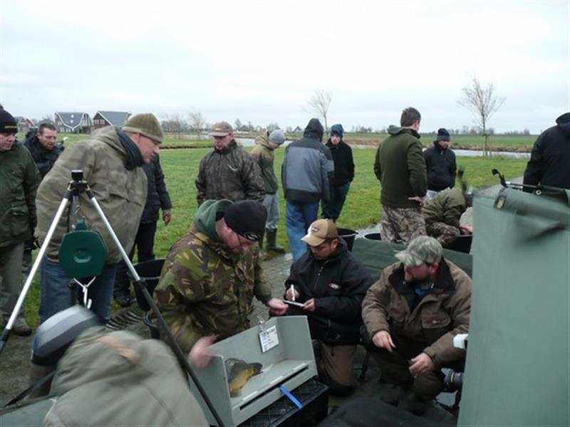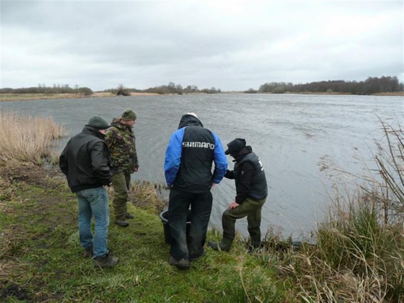 Diverse foto''s van de uitzetting van plusminus 800 spiegelkarpers in de Friese Wateren